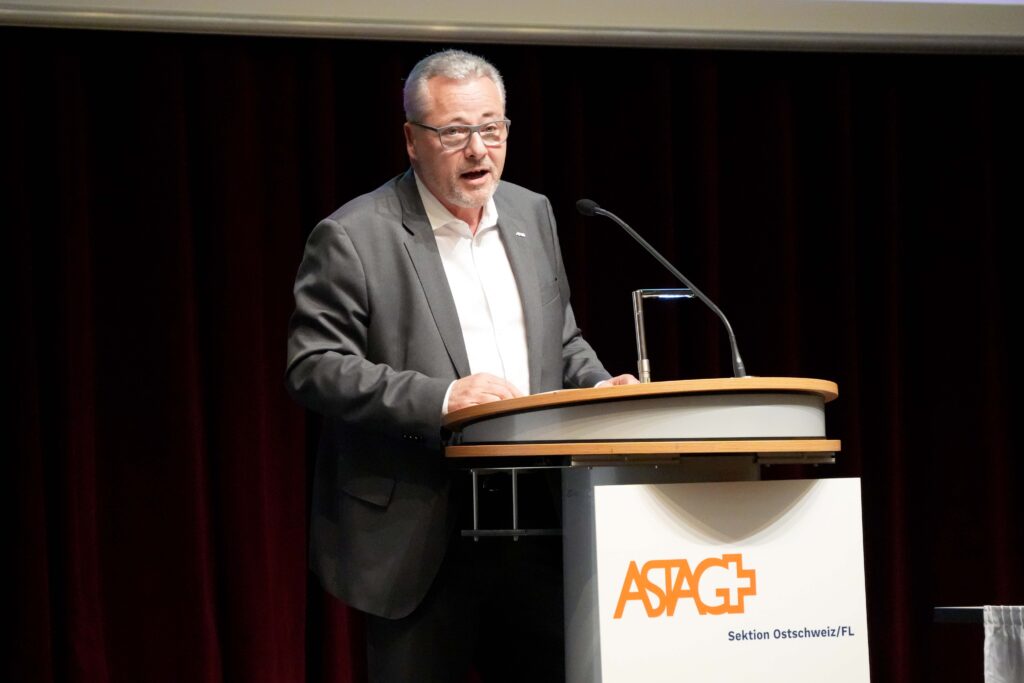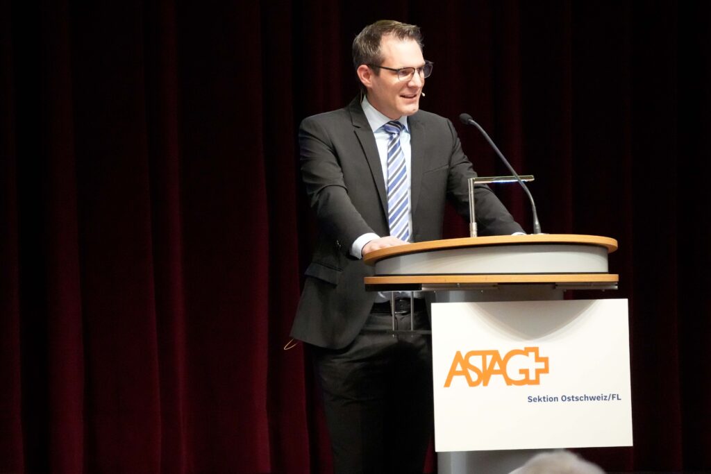 Nach einer kurzen Pause überbrachte ASTAG-Direktor Reto Jaussi die neuesten Informationen aus der ASTAG Zentrale. Dabei informierte er über den aktuellen Stand der Verhandlungen zur Weiterentwicklung der LSVA. Zur grossen Freude fällte der Nationalrat in der Session erste Beschlüsse und folgte darin in grossen Teilen den Anliegen der ASTAG. Zudem stellte er das Branchenprogramm «InCharge» vor, welches finanzielle Unterstützung für Mitglieder mit KMU-Grösse bei der Planung und Umsetzung von E-Ladestationen gewährt. Letztlich warb Jaussi für eine neue App, über die bestehende Ladeinfrastrukturen anderen ASTAG-Mitgliedern gegen Bezahlung zur Verfügung gestellt werden können.
