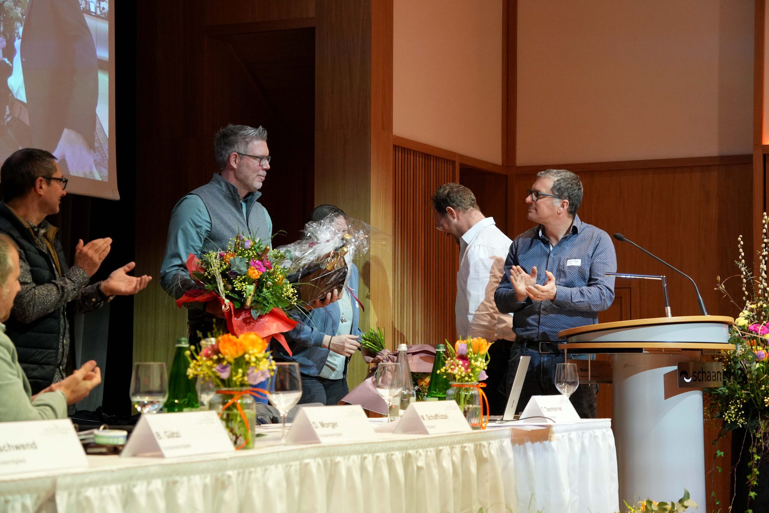Roger Gehrig, seinerzeit zusammen mit Marco Schafflützel in den Vorstand gewählt, blickte in einer Laudatio auf dessen langjährige Vorstands- und Präsidialzeit zurück. Er würdigte Marco Schafflützel für seinen unermüdlichen Einsatz in zahlreichen Projekten, die zukunftsgerichtete Führung des Verbands sowie die kollegiale und vertrauensvolle Zusammenarbeit im Vorstand über viele Jahre hinweg. In Anerkennung seiner grossen Verdienste während der letzten 15 Jahre im Vorstand, davon zehn Jahre als Präsident, wurde Marco Schafflützel die Ehrenmitgliedschaft verliehen.