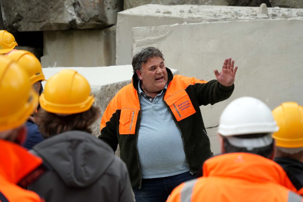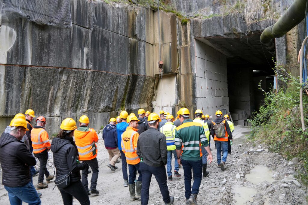 Am 20. April 2026 fand die 41. Mitgliederversammlung des Verbandes Baustoff Kreislauf Ost BSKO in Schmerikon statt. Die vorgängige Betriebsbesichtigung fand dieses Jahr bei der Firma J. & A. Kuster Steinbrüche AG statt. Die rund 40 Teilnehmenden erwartete eine spannende Führung im Untertagesandsteinbruch Bollingen. Christian Kuster begann die Besichtigung vor dem Portal des über 300 Meter tiefen Stollens mit einer Kurzvorstellung des Unternehmens und einem geschichtlichen Exkurs. Bereits im 12. Jahrhundert wurde in der Region Sandstein aus Bollingen verbaut, wie man bei Restaurationsarbeiten feststellen konnte. Der Abtransport geschah früher noch via nahegelegenen Zürichsee – dafür hätte man noch heute das Wegrecht vom Stollen zum See. Die Schifffahrt war damals das Haupttransportmittel. Heute führen LKWs den Sandstein ab zur weiteren Verarbeitung. Das Unternehmen beliefert hauptsächlich Gartenbaubetriebe.